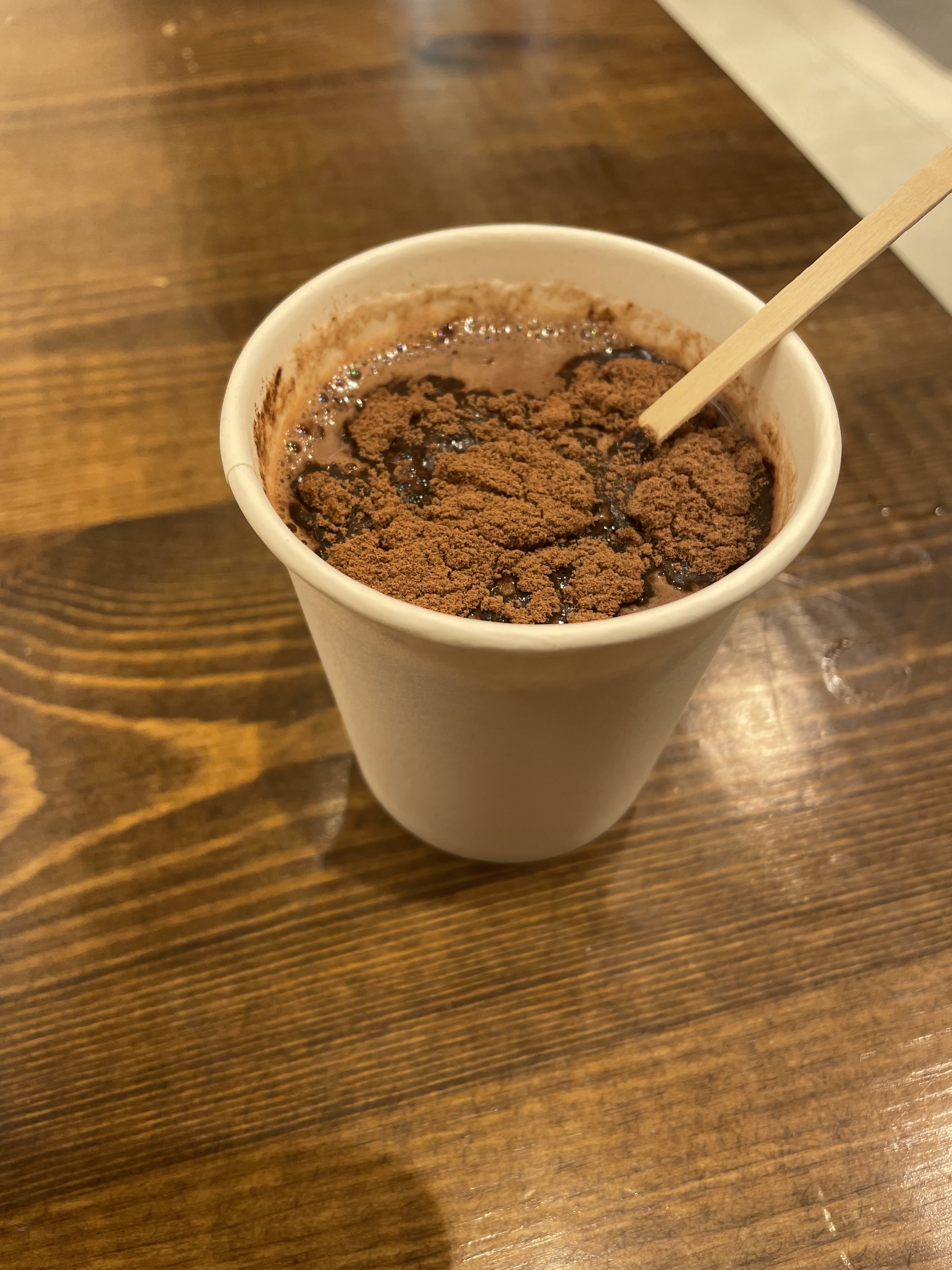 Je commander un chocolat chaud ce matin et voilà ce que la vendeuse me donne ,même pas mélanger à peine chaud pas de sucre j’étais obliger de lui demander