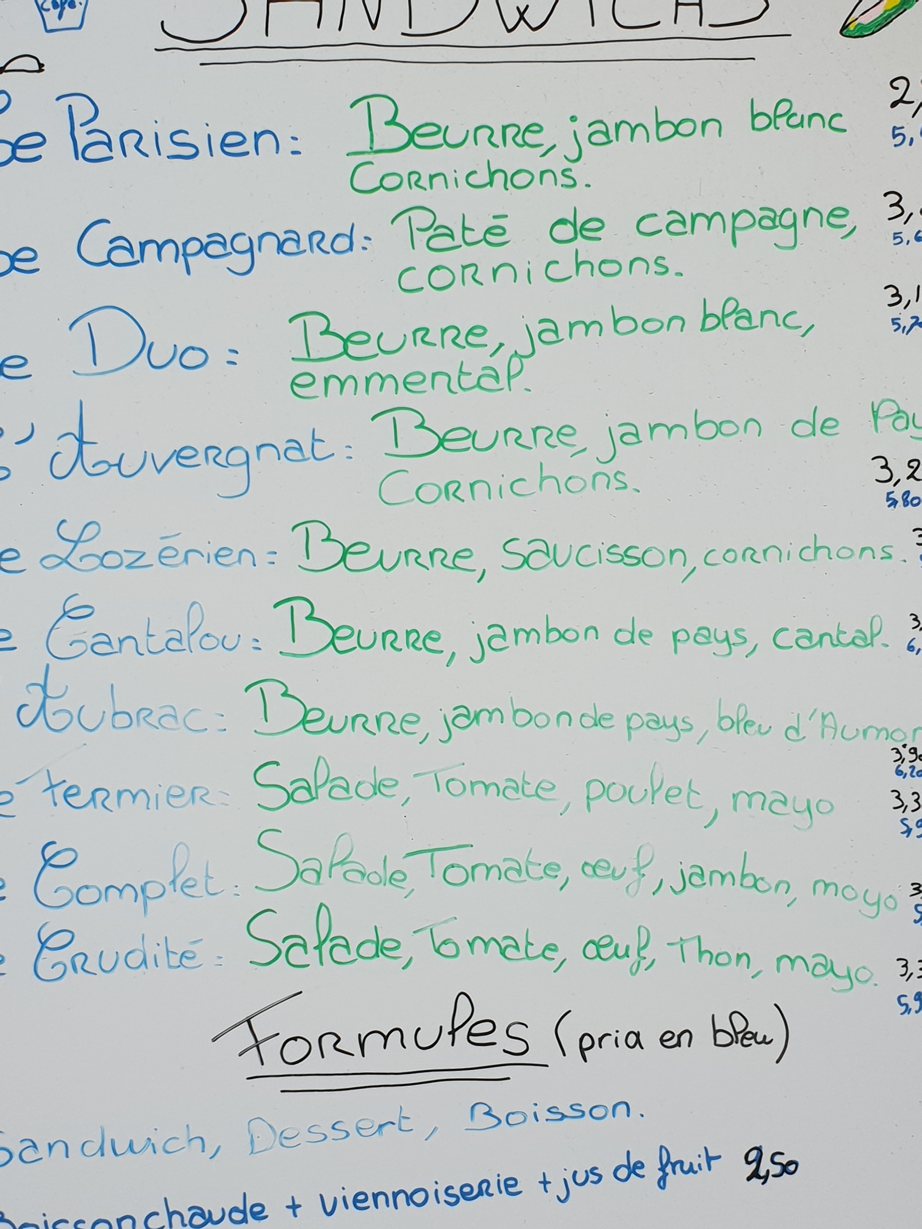 Une tarte aux myrtilles excellente à un prix défiant toute concurrence, comme le montre la carte des sandwichs