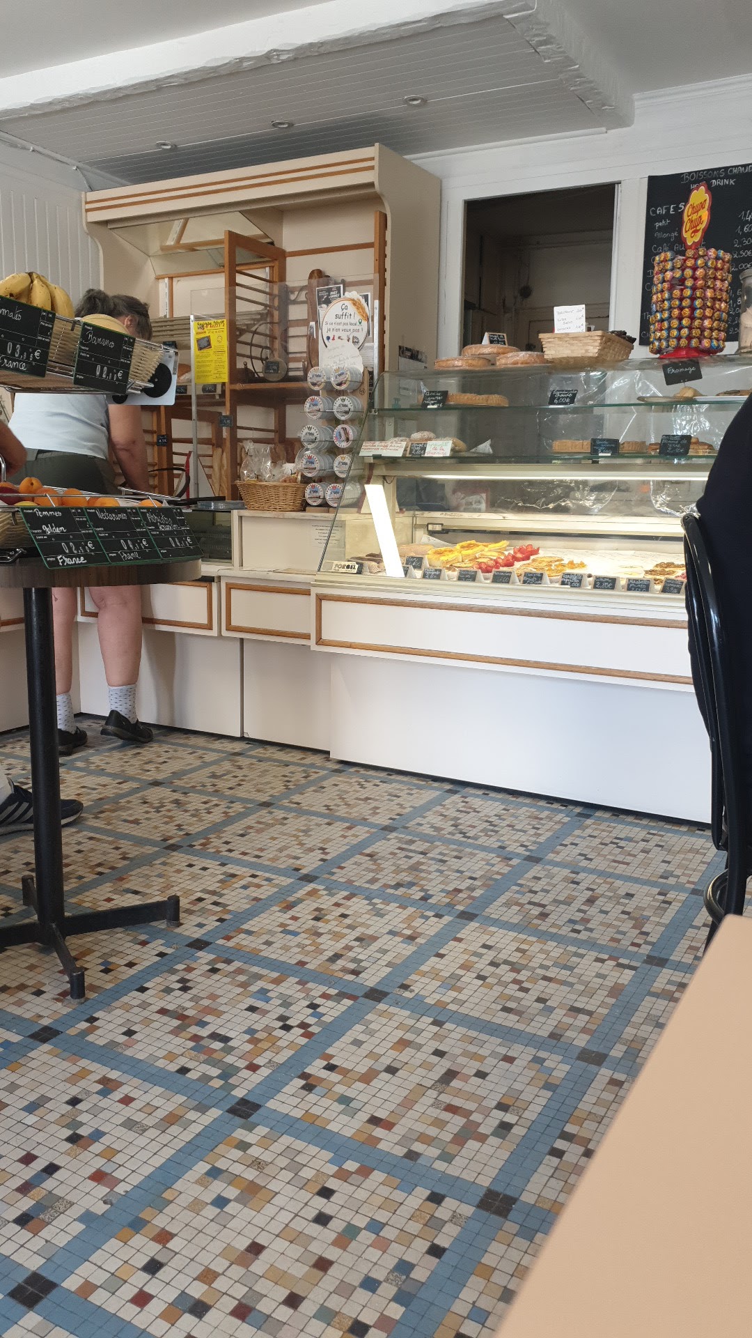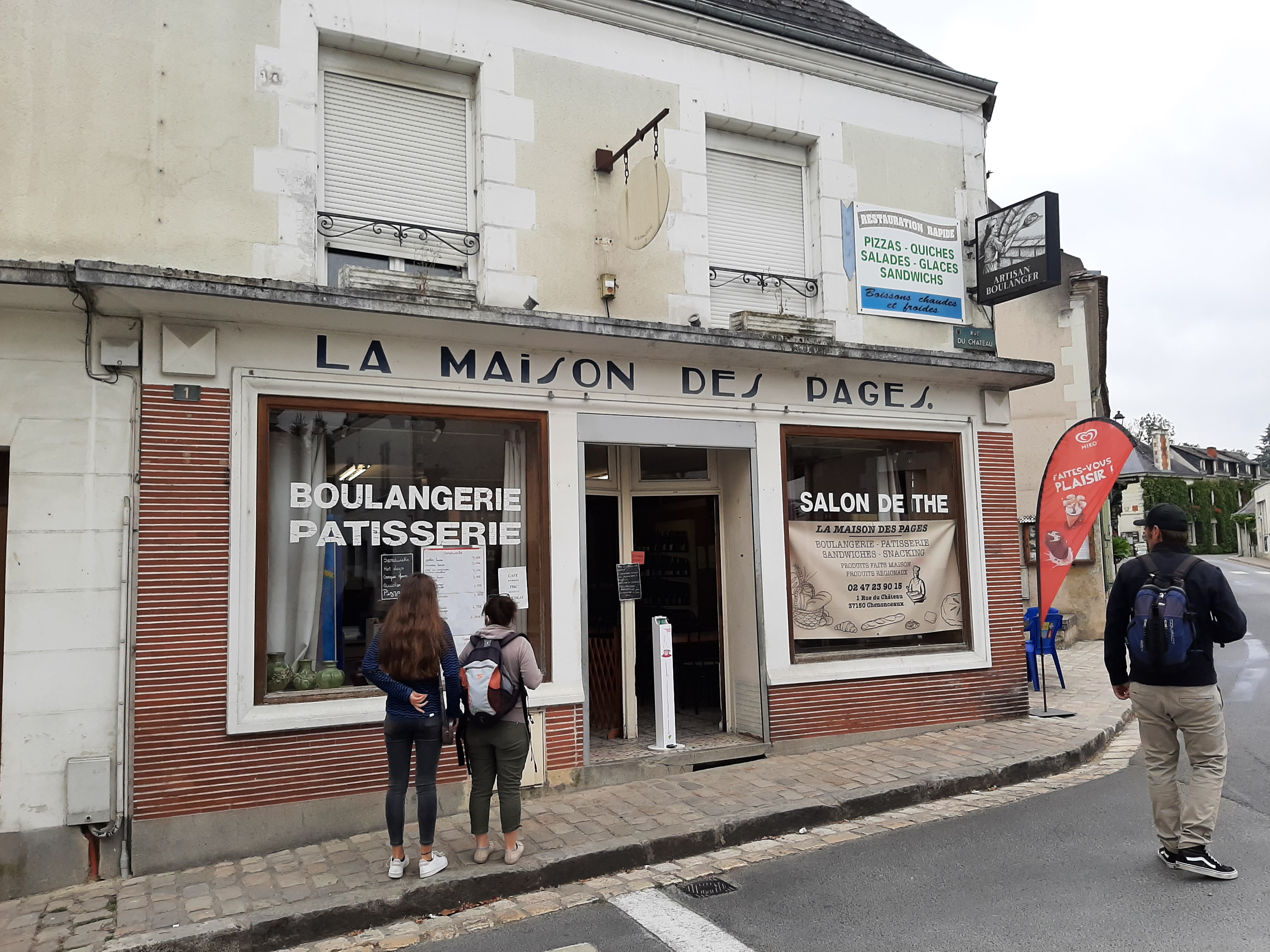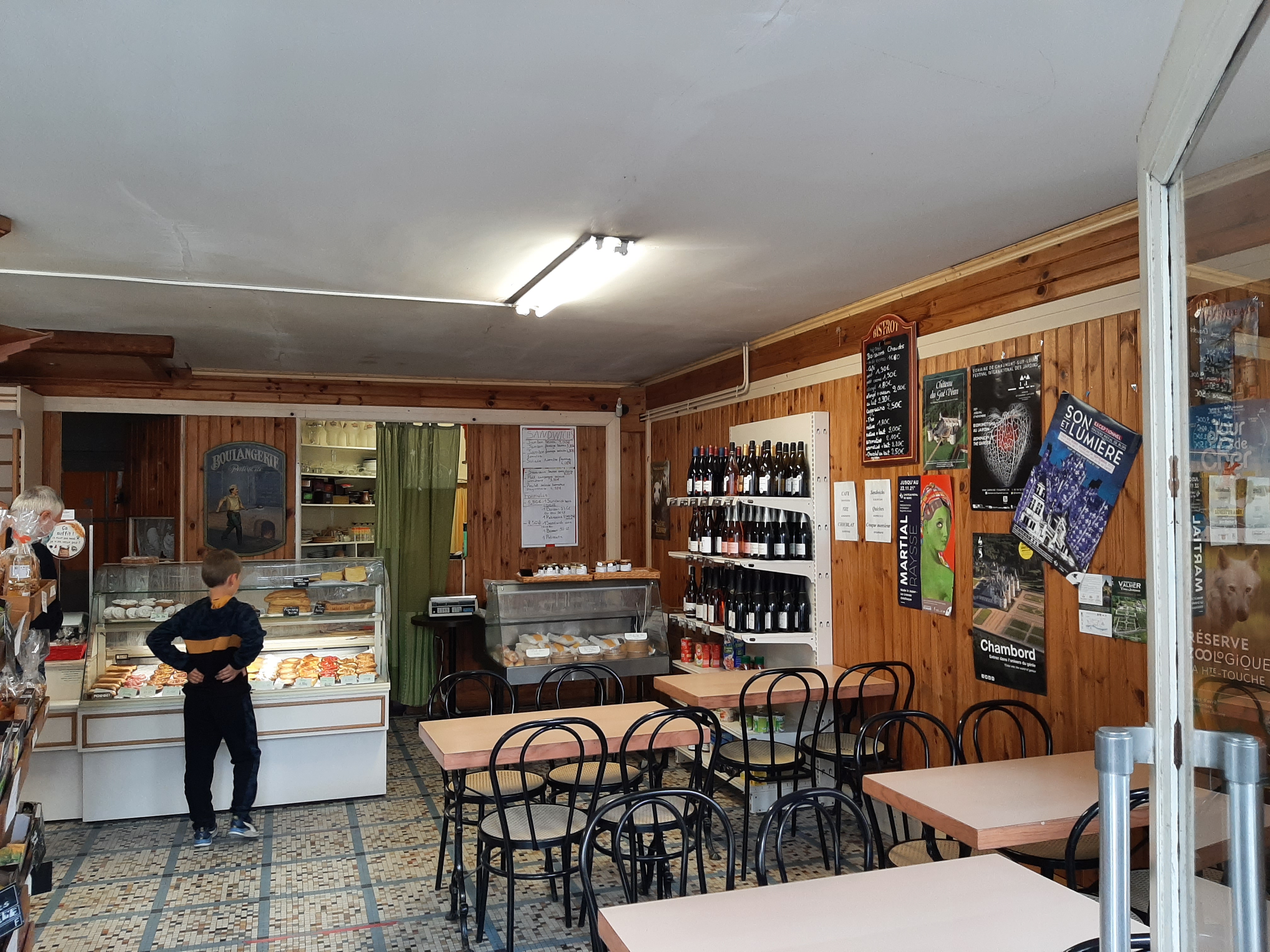 Petite boulangerie simple et bonne. Tables et chaises à l'intérieur pour prendre un chocolat chaud et des gâteaux pour le goûter après la visite du château. Merci !