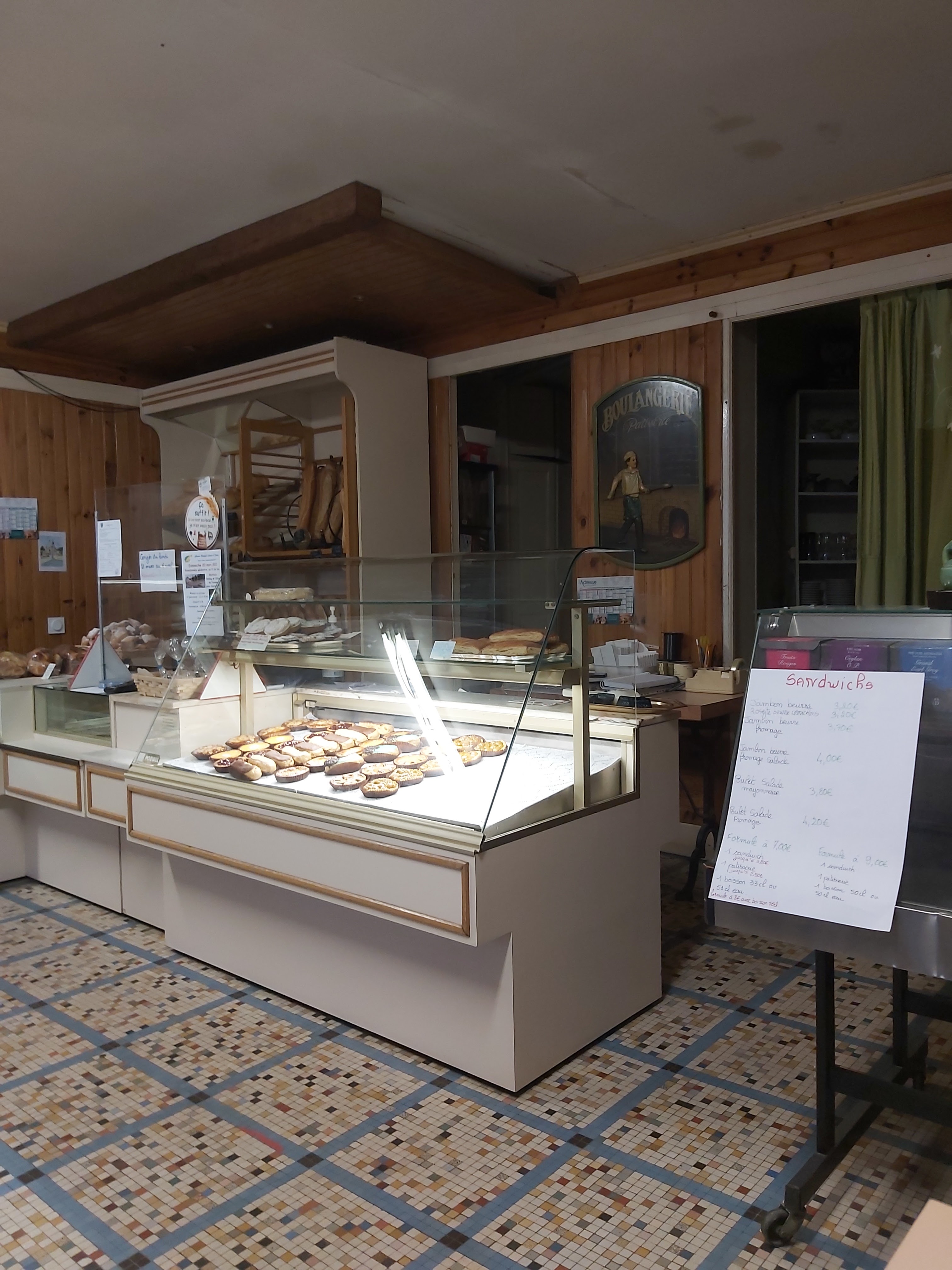 Le pain des sandwichs n’était pas très frais et la boulangerie est vieillissante. L’accueil reste néanmoins sympathique et l’établissement est situé à deux pas du château.