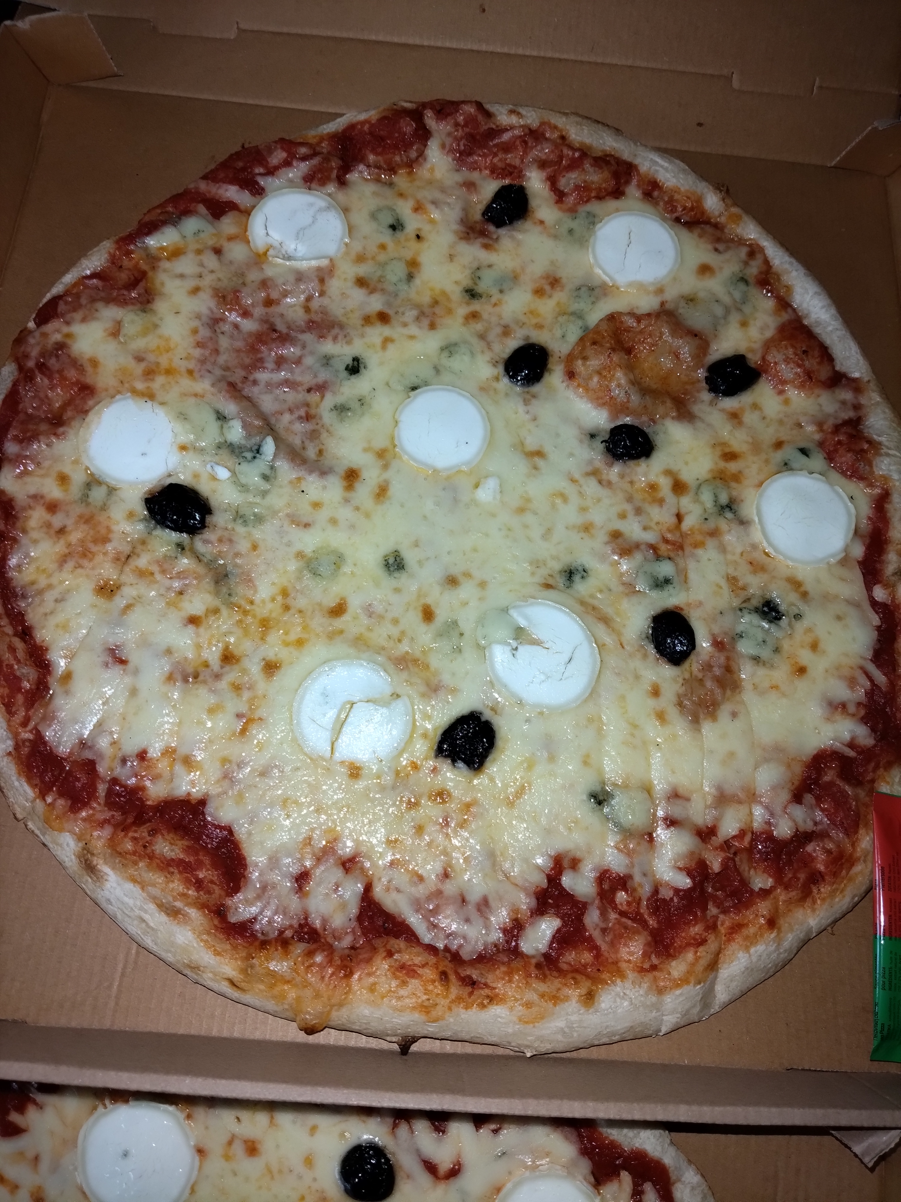 Juste rectifier mon problème avec deux pizzas, 4 fromages super sympa et pour se faire pardonner ils m'ont refait une pizza tartiflette Merci vendeuse super sympa 2 pizzas pour 15 € une 3 fromages et une tartiflette je me suis retrouvée avec deux trois fromage et on ne peut pas téléphoner très déçu moi qui n'aime pas le bleue